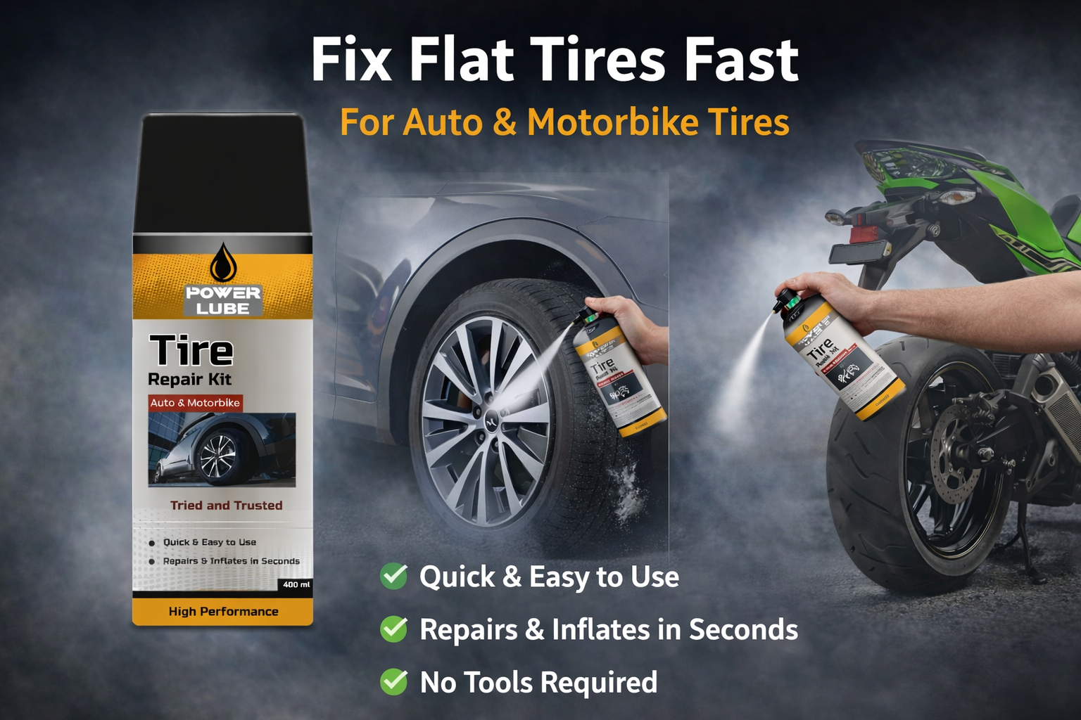 Power Lube Tire Repair Kit – Auto & Motorbike (400 ml)